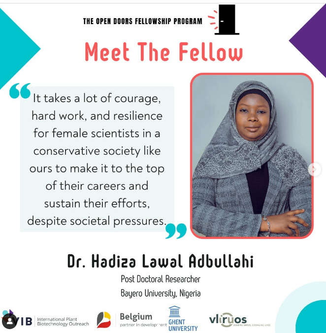Fellow Hadiza Lawal Abdullahi (Nigeria, 2022) recently completed a short research stay at the Center of Excellence in Mycotoxicology and Public Health at Ghent University in Belgium, representing one of seven postdoctoral fellows of this year’s Open Doors Fellowship program. Hadiza is a biochemist in toxinology and medical laboratory scientist seeking to improve food security by addressing mycotoxin contamination in food, animal feed, and agricultural products in Nigeria and the world over. In addition to the Open Doors Fellowship, she has won a grant for £32,000 GBP from the UK-based Africa Research Excellence Fund to complete a 6-month research development fellowship to study modern approaches to snakebite therapies at the Venoms and Toxins Unit of Institut Pasteur of Morocco. Furthermore, she has won a $50,000 USD grant from the Association of American University Women’s (AAUW) postdoctoral fellowship with the National University of Singapore and the National Natural Toxins Research Center (NNTRC) at Texas A&M University-Kingsville. In her permanent post, she is an associate professor and postdoctoral researcher at Bayero University in Kano, Nigeria where she also serves as head of the Department of Veterinary Physiology and Biochemistry.